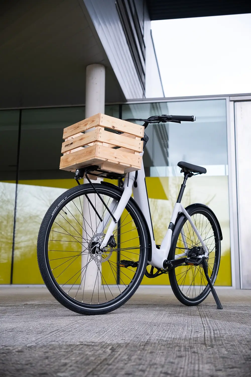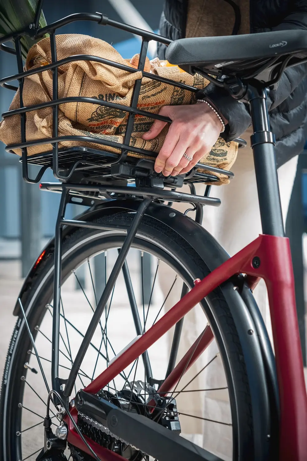 Nos porte-bagages permettent le montage « quick fix » de paniers et sacoches. Le système est identique à l’avant et l’arrière pour tous les accessoires.